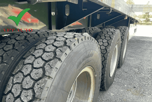 Lốp xe tiêu chuẩn 12.00R20, có khả năng chịu tải nặng, bền bỉ trên nhiều loại địa hình, đảm bảo an toàn trong suốt hành trình.